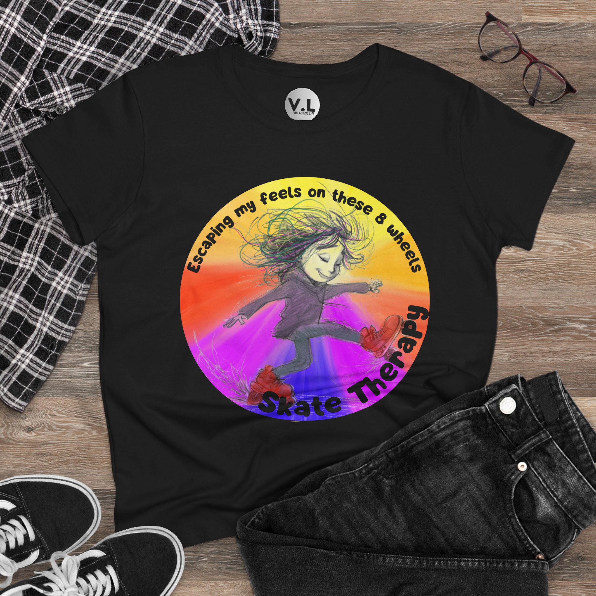 Skate Therapy shirt – exploring me feels on these 8 wheels. Skate therapy is real af and this shirt lets you find your healing and wellness tribe at the rink or wherever you skate