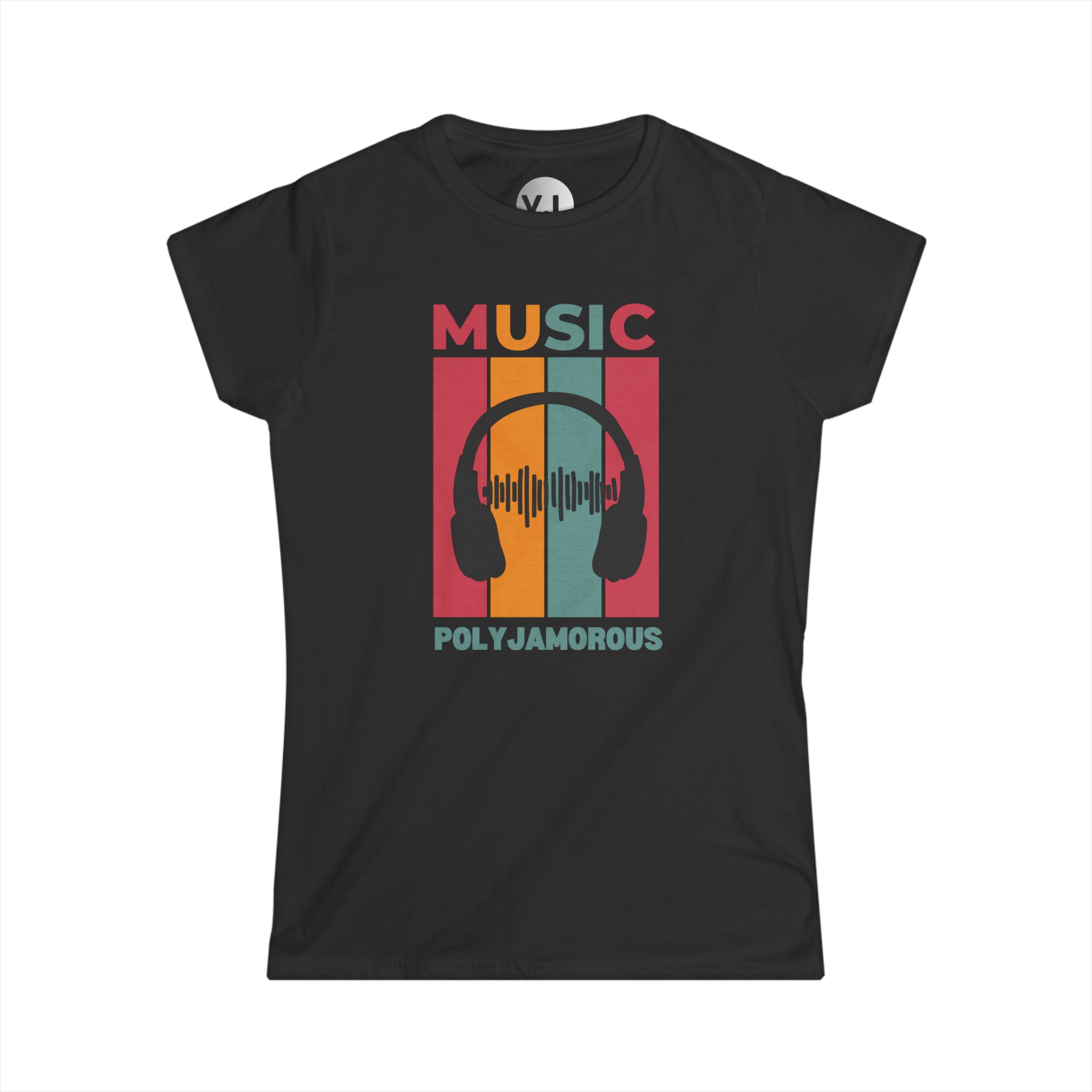 Celebrate your freethinking, open-minded taste in tunes with our PolyJAMorous shirt, a perfect blend of style and musical passion. This unique tee is crafted from 100% ringspun cotton, ensuring a soft, comfortable fit that music lovers will appreciate. The lightweight fabric, makes it an ideal choice for any season, providing breathability and ease. Featuring a vibrant music art design, this shirt showcases a colorful array of banners cascading behind a sleek pair of black headphones, symbolizing your love for getting lost in the finest of all music genres. The semi-fitted cut offers a flattering silhouette while maintaining comfort, and the tear-away label means no more itchy necks. When you’re a fan of jazz, alt rock, deathmetal, punk rock, ska, reggaeton, rock, pop, and classical, the PolyJamorous music lover tee speaks to your soul. It runs true to size, ensuring you find your perfect fit. Embrace your diverse music taste with this all-encompassing music genre tee.