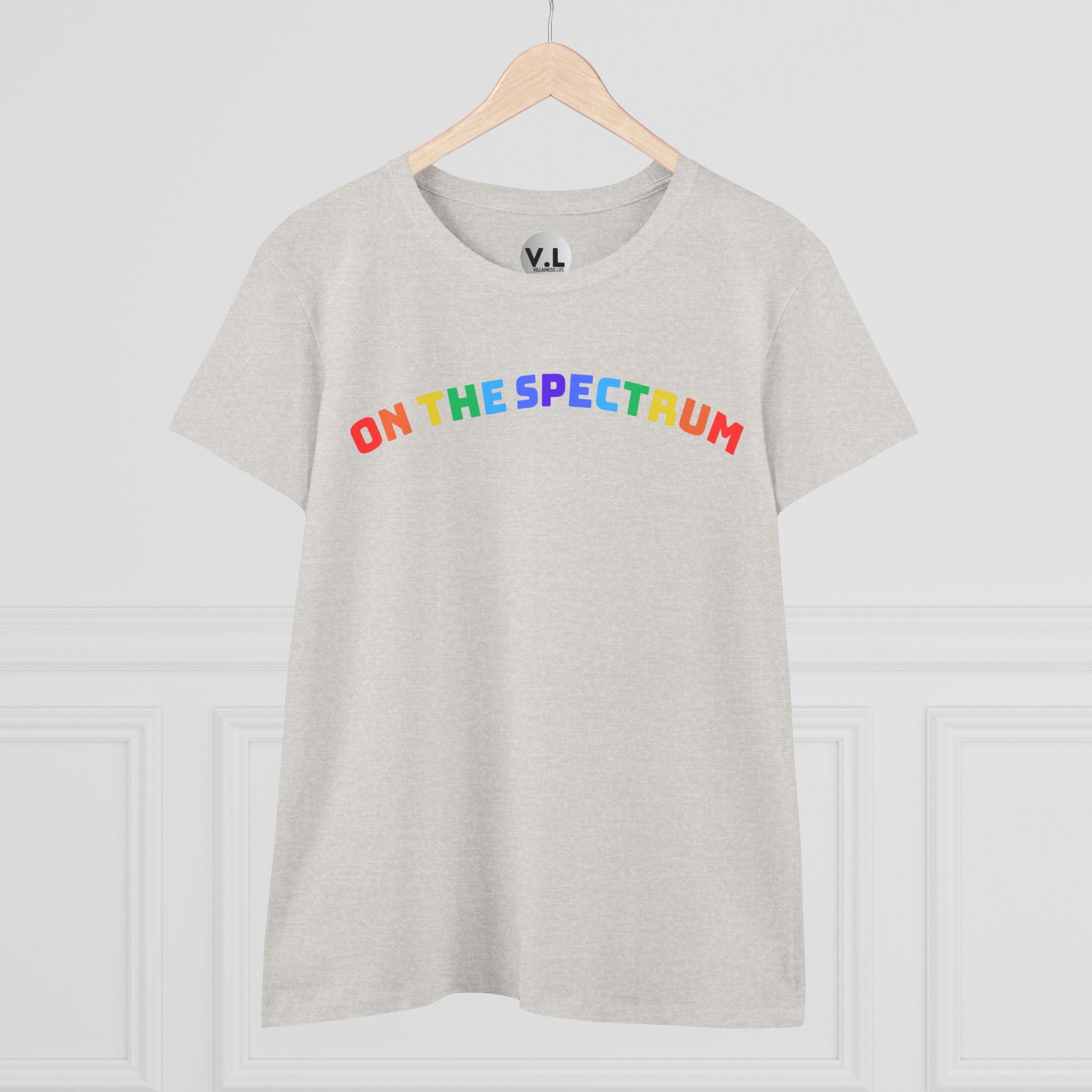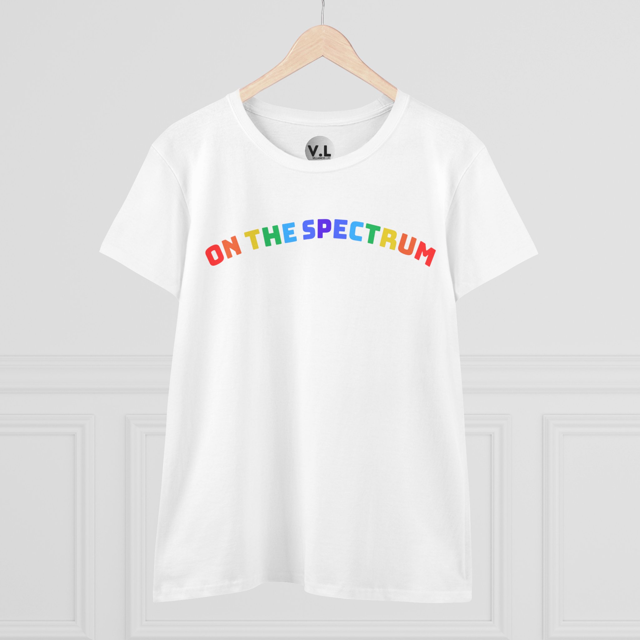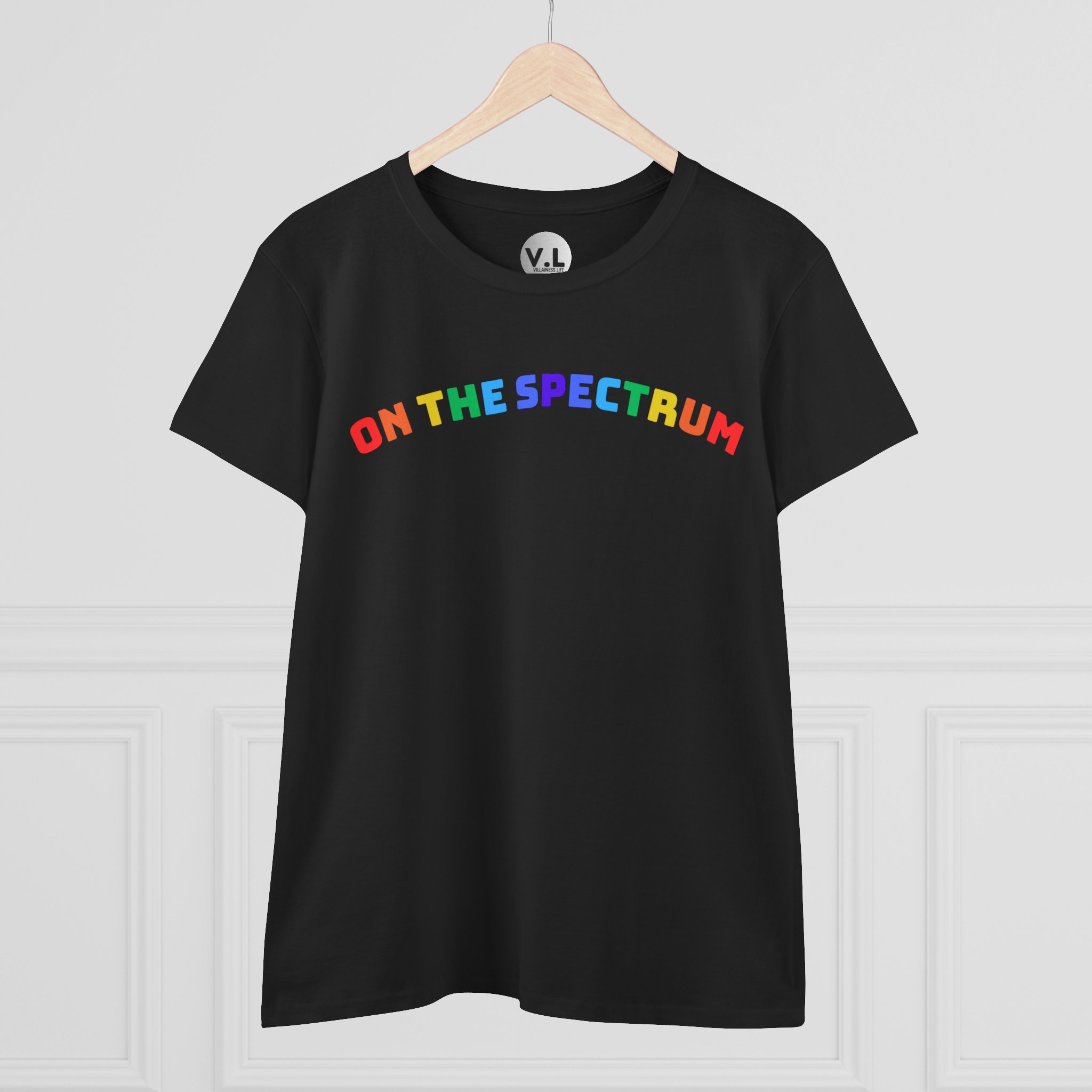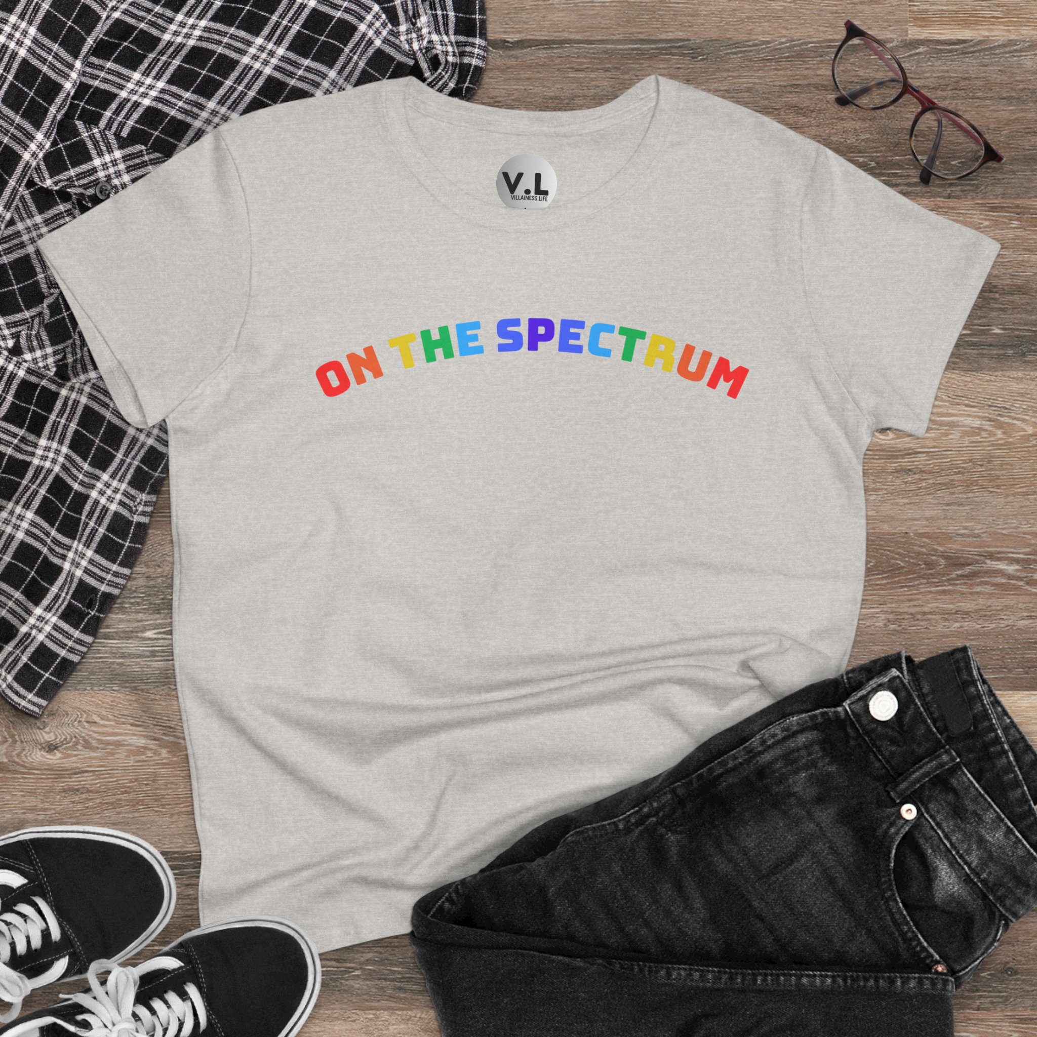 Celebrate diversity and inclusivity with our Autism Spectrum Shirt. This unique piece of apparel features bold, rainbow-colored lettering that proudly states “On the spectrum.” The design carries a double meaning, making it perfect for those who identify with the autism spectrum or anyone who supports the myriad of gender and sexuality combinations symbolized by the rainbow.